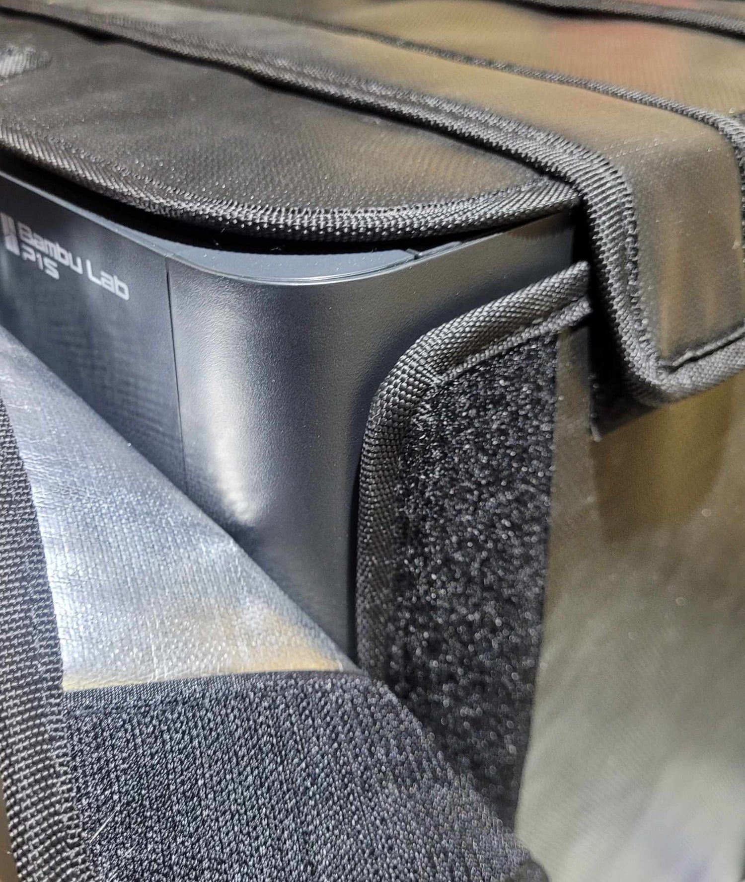 Fitment can be completed within a matter of minutes using the Velcro system. The cover is removable without any evidence that it ever existed on the printer. No glue, no holes, no permanent attachment. The top panel and door cover can be opened during printing allowing for fitted machines to print everything from PLA to PCCF.