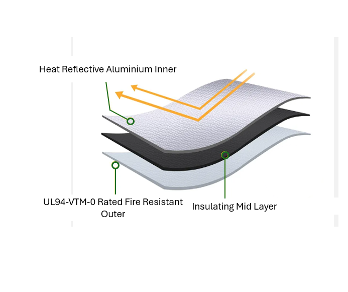 IGLU combines the benefits of multiple materials to achieve its performance. The inner layers reflect heat and insulate. The outer skin is tough and looks great. Every layer has been built with fire resistance in mind.